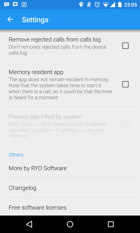 Si noti che l'applicazione si avvia quando viene ricevuta la chiamata. A causa di questo, è possibile che il sistema avvia la chiamata in arrivo suoneria prima della applicazione termina esso. In tal caso, per favore, creare una suoneria con 1-2 secondi di silenzio e di usarlo.