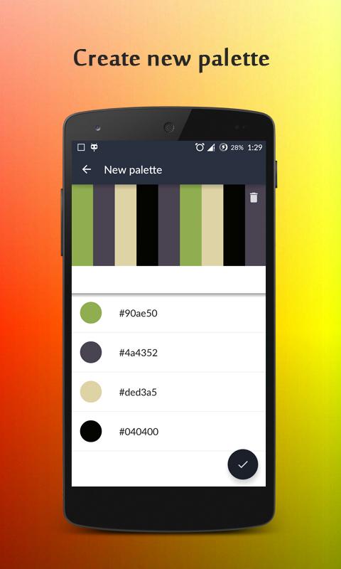 È inoltre possibile scegliere numerosi colori attraverso la fotocamera e salvarle. Dopo di che è possibile scegliere tutti i colori rilevanti e creare le proprie tavolozze o temi di colori che possono essere facilmente condivisi con i tuoi amici con le varie applicazioni presenti nel telefono.