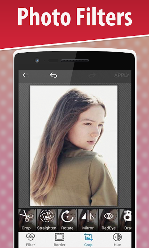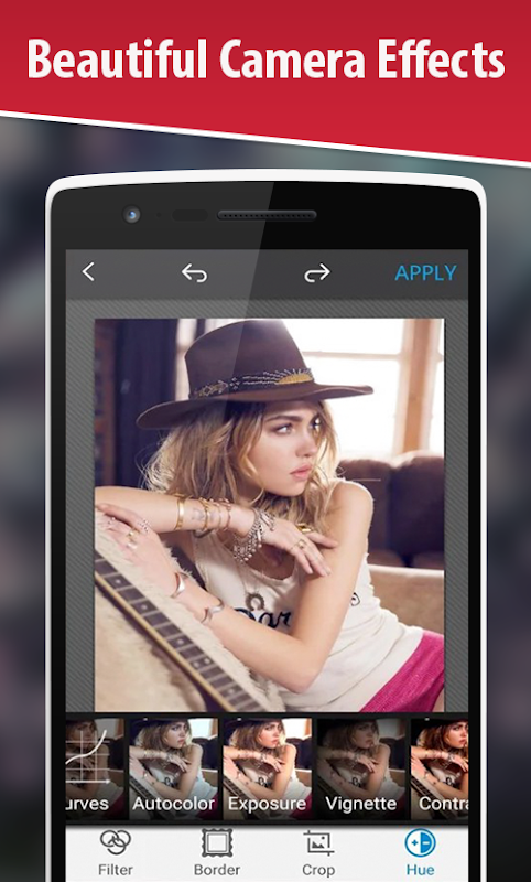 Camera Filters and Effects will give you instant access to many tools to make your photo a worthshare picture with your friends and make you look beautiful. It can be an amazing Selfie cam that comes with high quality filters. The main feature is that you can apply filters in real-time with fast retouching, also there is a function that will help you make focus on your face and make background blur & vignetting easily.