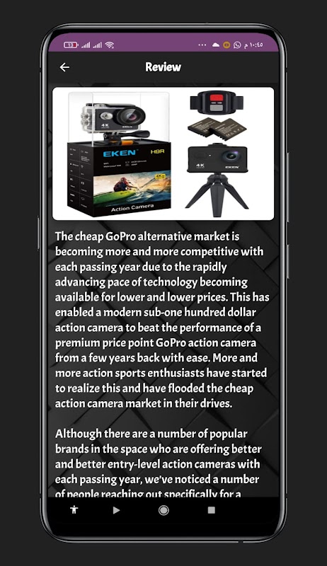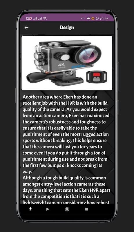 Un'applicazione guida action camera eken h9r che fornisce informazioni