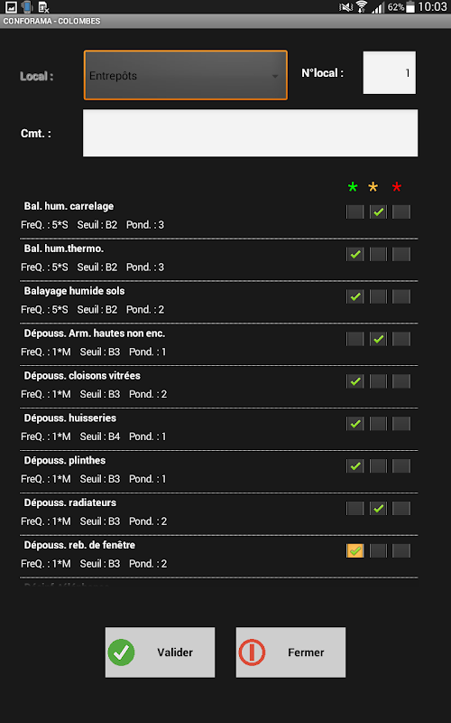 L'intérêt majeur du logiciel Cap Control, réside dans le fait de toujours avoir disponible à l'écran du Smart Phone (Android), l'ensemble du cahier des charges avec pour chaque local, toutes les prestations prévues, et pour chaque prestation, les fréquences (non contractuelles), les seuils de mesurage et les coefficients de pondération.