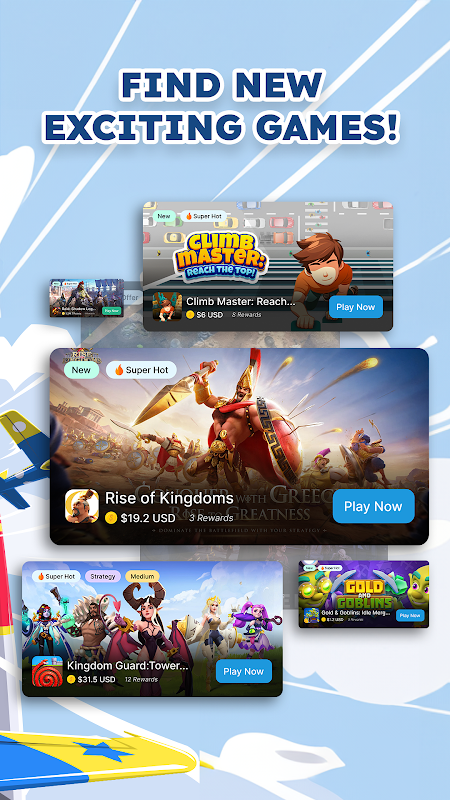 Esplora una moltitudine di attività divertenti all'interno dell'app, inclusi i giochi, e guadagna premi riscattabili per ogni attività completata. Sia che tu stia giocando o impegnandoti in altre attività, accumulerai punti che potranno essere scambiati con preziose carte regalo e bonus.