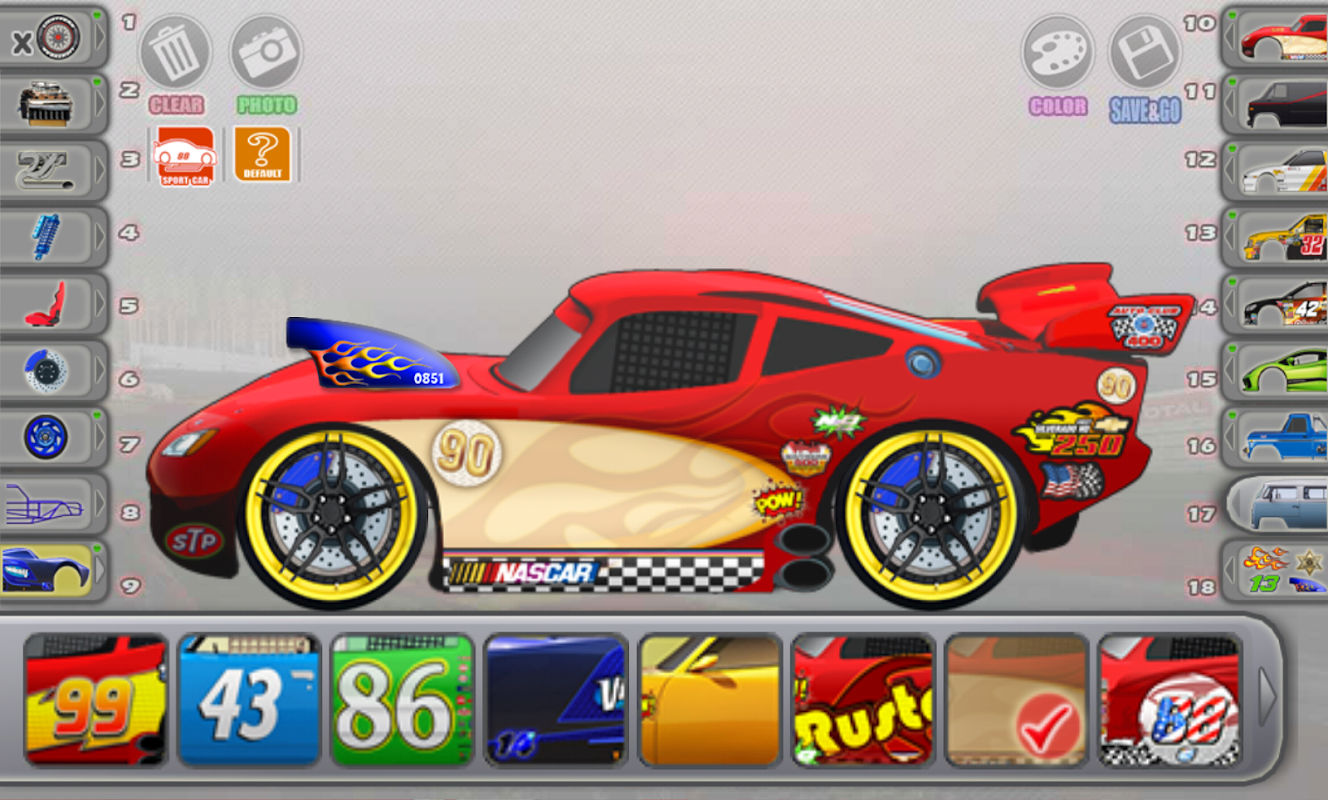 This game allow to create and fix the tracks for your custom cars. The game will help in a playful way to remember different parts of vehicles, develop observation and will give many hours of fun.