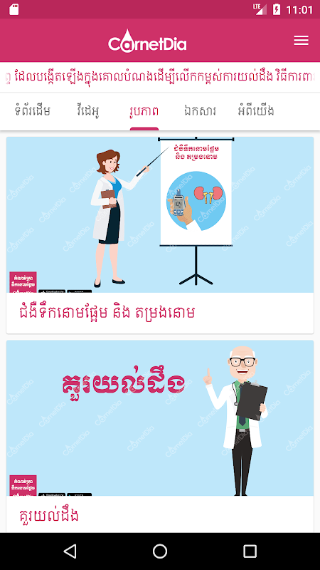 La nostra visione è aumentare la consapevolezza del popolo cambogiano sul diabete. CarnetDia è un taccuino digitale. E in CarnetDia ci sono videoclip, immagini e documenti relativi al diabete, pensati ad hoc secondo il contesto socio-culturale cambogiano.