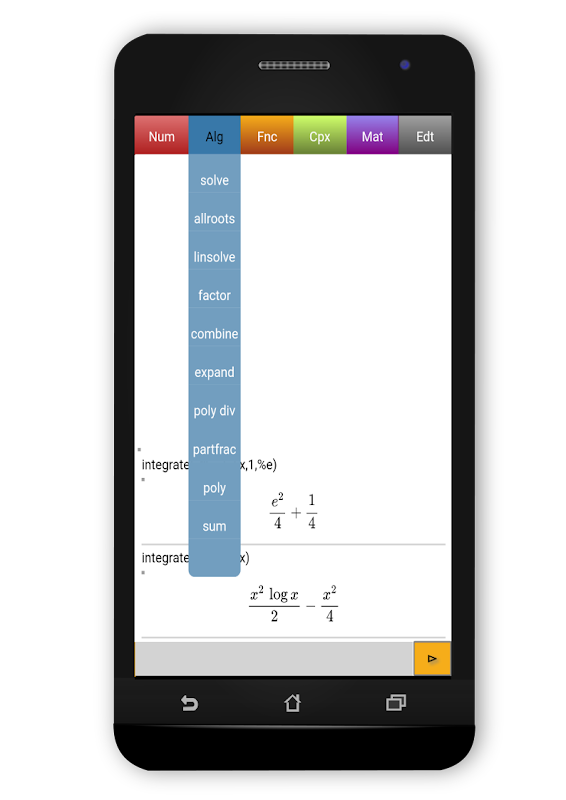 CAS per Android è un'applicazione di calcolo formale per Android che ti offre le seguenti opzioni:
