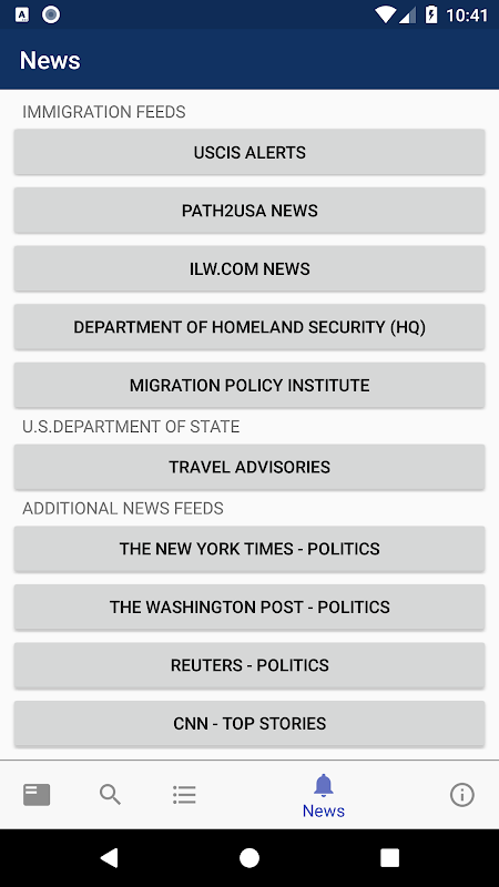 • News section provides access to the latest happenings from USCIS, Department of Homeland Security, Travel Warnings/Alerts and more.