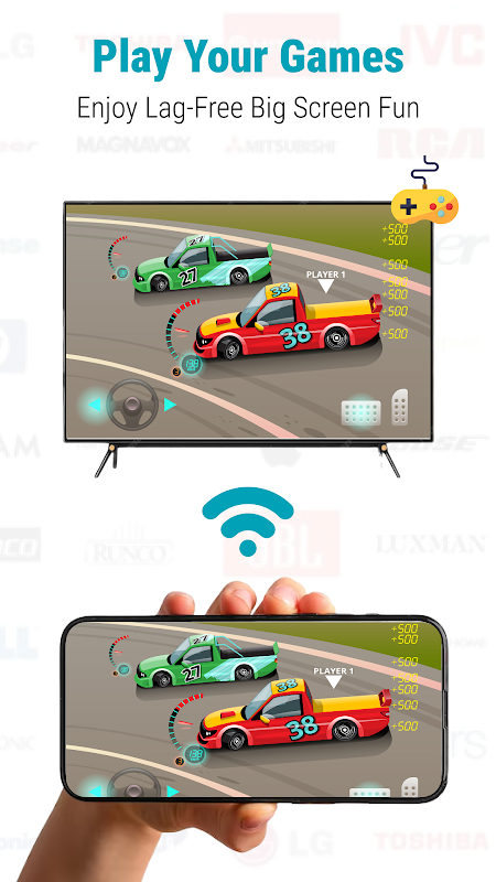 Esegui il mirroring del tuo telefono tramite Wi-Fi con bassa latenza e qualità HD.