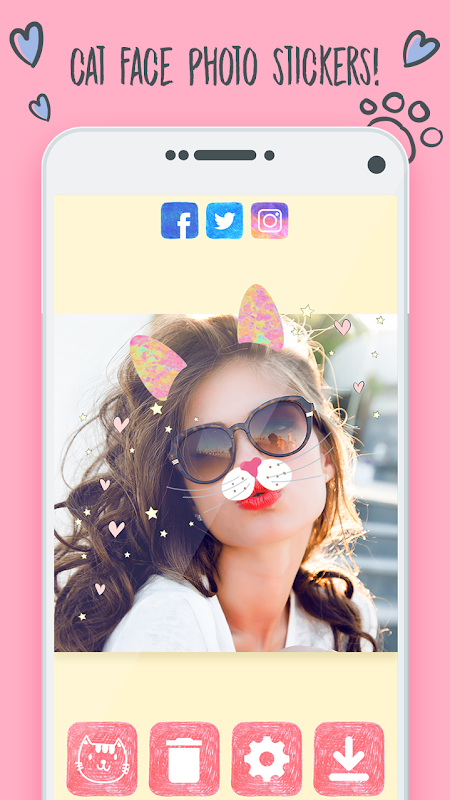 Crea le foto del volto di gatto con l'incredibile applicazione "snap photo"! Scarica il 😺Animali Viso Editore Di Foto 😺 e aggiungi adesivi unici alle tue foto! Utilizza gli adesivi gratuiti e gli effetti snodati della fotocamera per creare dei montanti divertenti con una delle migliori applicazioni per l'editor del viso. Decorare le tue foto con il divertente editor di foto e avere una completa trasformazione virtuale. Carica una delle tue foto o catturi una nuova con la fotocamera istantanea, scegli una testa di gatto e aggiungila all'immagine. L'editor di immagini gratuito ti permette di regolare la dimensione degli adesivi per adattarsi perfettamente alla tua faccia con una spazzata della tua mano! Entra nello studio virtuale per gli adesivi di gatto e cambia il tuo volto in una foto carina della faccia animale! Utilizza questo editor di foto per creare splendide immagini selfie!