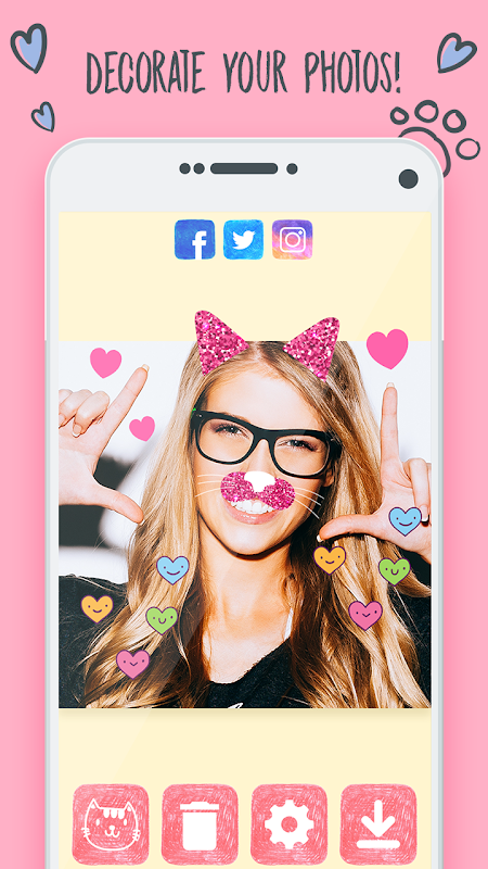 😺Animali Viso Editore Di Foto 😺 è piena di vari filtri di foto e adesivi snappy per le tue foto! Consente di utilizzare l'immaginazione usando le funzioni sofisticate dell'editor di immagini. Fai una bella risata con un'applicazione per il cambio del viso! L'app gratuito di editore di foto divertente è molto facile e divertente da usare. Il nuovo creatore di montature fotografiche è stato attentamente progettato per ragazze moderne che si trovano nelle ultime tendenze della moda!
