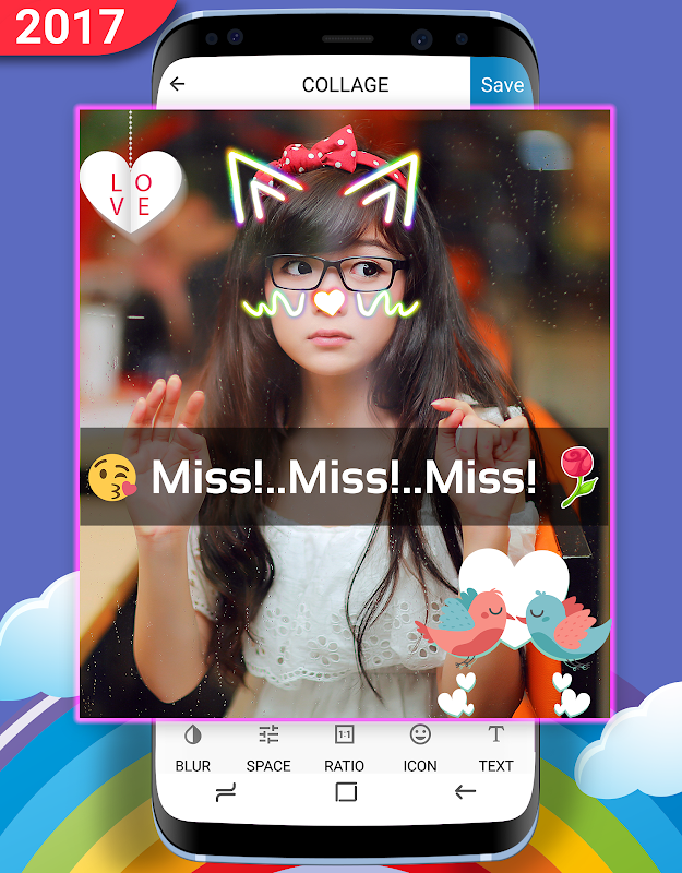 This app using your photos, funny face, funny stickers, backgrounds, text with cool fonts and frames.