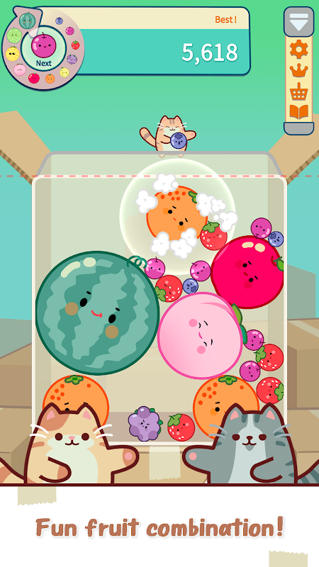 Crea combo e carica il pugno del tuo gatto! Un puzzle di frutta con una combinazione speciale!