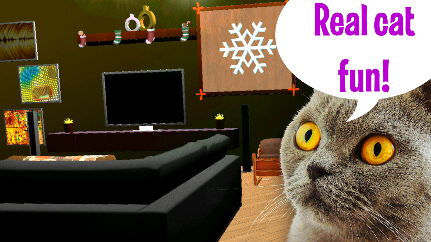 Virtual cat should find all virtual gifts while virtual people are gone.
