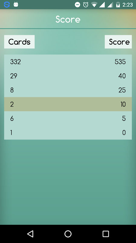 Finally you will have your top 10 scores in score screen where number of cards denotes your right moves.