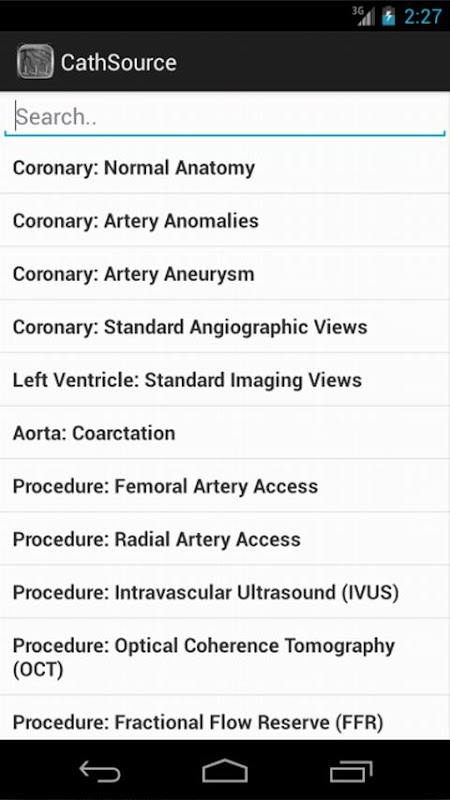 CathSource (dai creatori della ECGsource applicazioni mobili e EchoSource) è un riferimento medico up-to-date dedicato esclusivamente al cateterismo cardiaco e angiografia. Sviluppato da praticare cardiologi interventisti sia per specialisti e tirocinanti nel campo delle malattie cardiovascolari, CathSource offre il seguente contenuto: