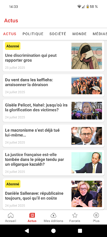 Segui le notizie ogni giorno sull'applicazione Causeur.fr e leggi sul tuo telefonino tutti gli articoli ad accesso gratuito pubblicati sul nostro sito.
