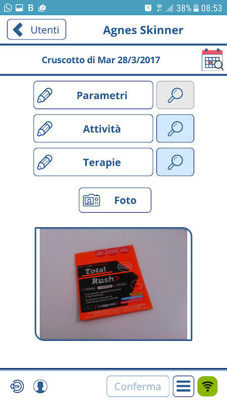 Applicazione di data entry parametri sanitari, rilevazione attività utente e somministrazione terapie.