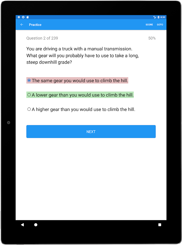 2. Modalità esame: 60 minuti per rispondere a 50 domande scelte a caso o 40 minuti per rispondere a 20-30 domande su argomenti di approvazione. Alla fine, rivedi il tuo punteggio e tutte le risposte errate.