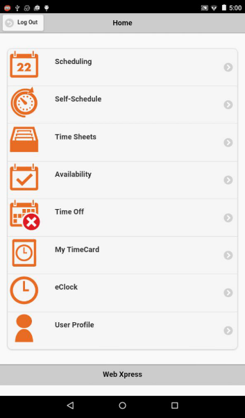 Web Xpress Mobile consente di utilizzare personale smartphone per visualizzare orari e l'orologio-in / out.