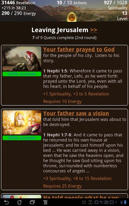 Play the part of Nephi as you travel into the desert, from leaving Jerusalem to gathering the plates and Ishmael's family to building the ship to carry you to the promised land. Find out what it was like to follow the Liahona, make a bow and go hunting with no guarantee of finding enough food to live to see tomorrow, or build a ship large enough to carry you and your family across the sea.