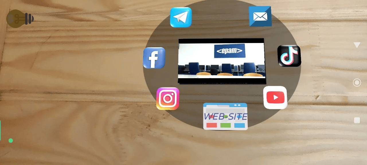 Il biglietto da visita AR sviluppato del Dipartimento di Ingegneria Informatica e Programmazione contiene una varietà di contenuti: un video clip con informazioni sul dipartimento, collegamenti utili al sito e ai social network, informazioni sulla gestione del dipartimento. Ha anche la possibilità di cambiare lingua (ucraino/inglese – dipartimento КИП/CEP). Quando si scansiona un biglietto da visita con uno smartphone, avviene l'immersione nella realtà aumentata. Inoltre, grazie al rinnovamento dei materiali, puoi sempre vedere le informazioni attuali. La caratteristica della carta è l'interattività quando l'utente interagisce con le informazioni.