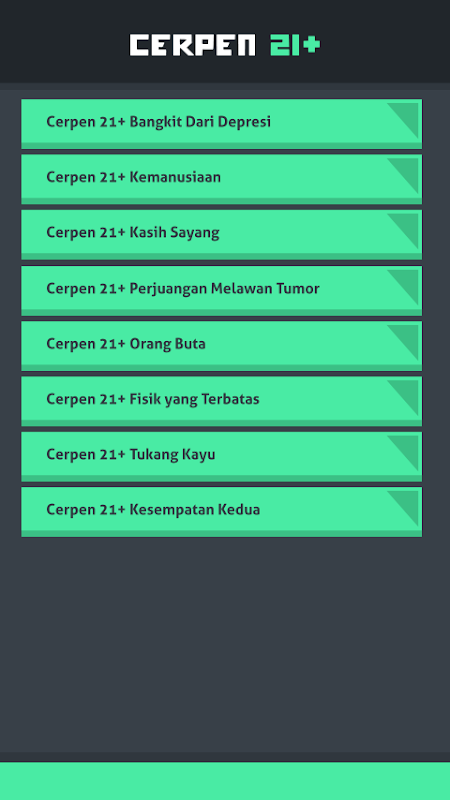 Cerpen 21+ tidak melulu sebuah cerita yang menceritakan romantisme kehidupan pasangan dua insan. Akan tetapi dapat berupa sebuah kisah inspiratif yang dapat memotivasi diri anda. Sebab tentu saja di dunia ini banyak sekali orang yang gagal dalam hidupnya dan mengalami keputus asaan serta kehilangan semangat hidup.