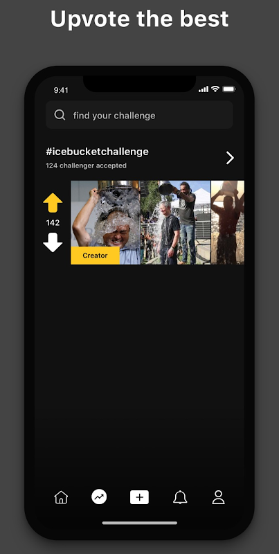 - Crea: carica una nuova sfida o accettane una. Invita le persone che desideri direttamente sull'app.