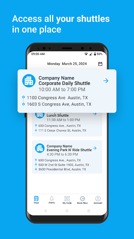 CharterUP fornisce ai ciclisti l'accesso alle navette programmate in tutta la loro organizzazione. Crea semplicemente il tuo account utilizzando il tuo indirizzo email e salirai a bordo rapidamente. Esplora gli itinerari della navetta, monitora i veicoli, prenota il tuo posto e prenota charter, tutto all'interno della nuova applicazione mobile CharterUP. Solo i passeggeri approvati avranno accesso ai viaggi in navetta nell'app.