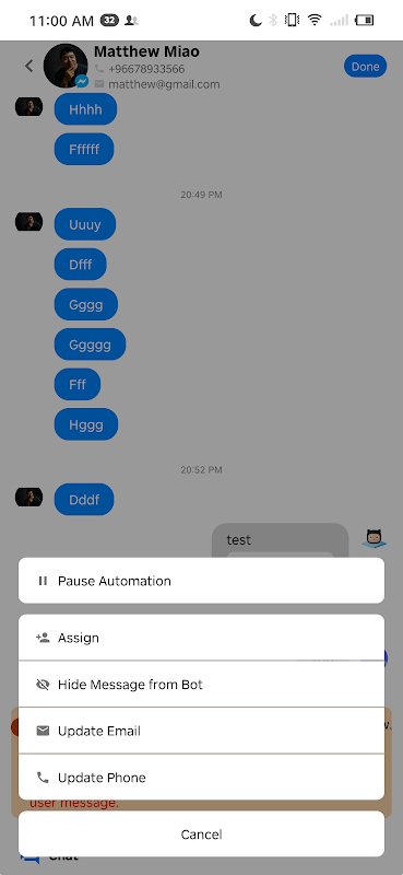 Puoi inviare messaggi modello (WhatsApp) o messaggi con tag messaggio o persino rispondere all'utente tramite SMS ed e-mail direttamente.