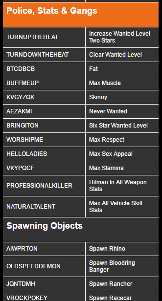 Keep an eye on this GTAForums thread for all the latest cheats.