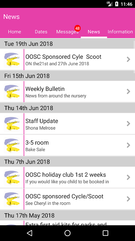 Shows all the latest stories from your nursery If you tap on any news item you will be able to see more detail.