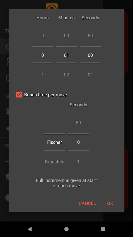 -Per i giocatori esperti, i controlli orari torneo ufficiali della FIDE possono essere utilizzati (o utilizzare le proprie impostazioni personalizzate)