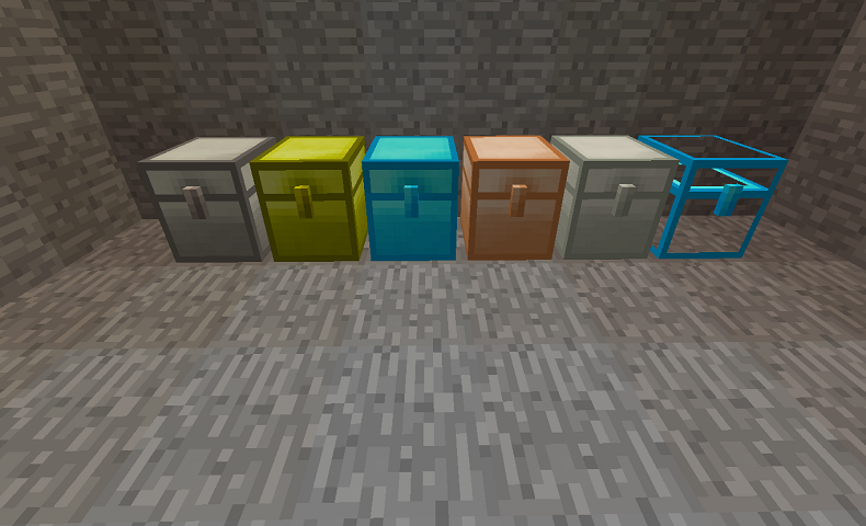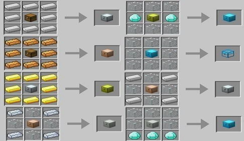 Cassapanche ferro Mod per MCPE aggiungerà al gioco nuovi tipi di casse, ognuno dei quali ha un certo numero di slot. L'add-on è stato creato appositamente per il cliente launcher centro interno, in modo che il mod funzionerà solo in essa.