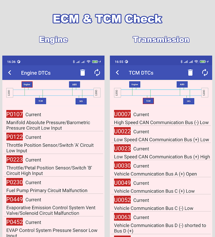 + Database DTC integrato con oltre 10000 codici di errore (versione gratuita sotto 8000 DTC)