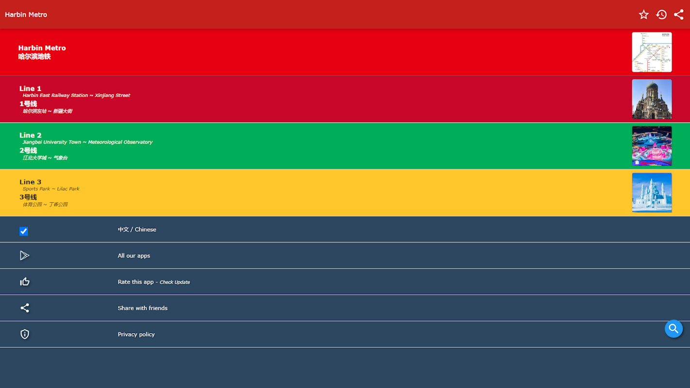 Ultime mappe dei trasporti offline per la metropolitana di Harbin, Cina
