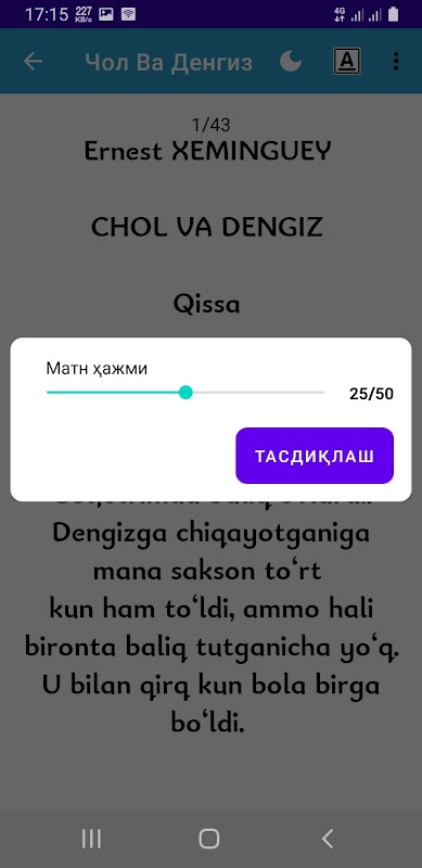 Chol qayiqda yolg'iz o'zi Golfstrimda baliq ovlardi. Dengizga chiqayotganiga mana sakson to‘rt