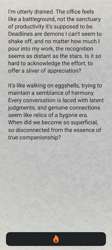 Animazioni e suoni rilassanti simulano un foglio di carta che brucia, creando un'esperienza di scrittura rilassante e coinvolgente.