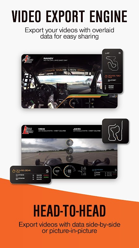 L'acquisizione video e la sovrapposizione dei dati sono completamente integrate, eliminando la necessità di editing su PC. I video possono essere registrati utilizzando la fotocamera integrata del dispositivo mobile o le videocamere GoPro connesse in modalità wireless. Il motore di transcodifica video integrato consente esportazioni di alta qualità con grafica sovrapposta per un'analisi dettagliata post-sessione.