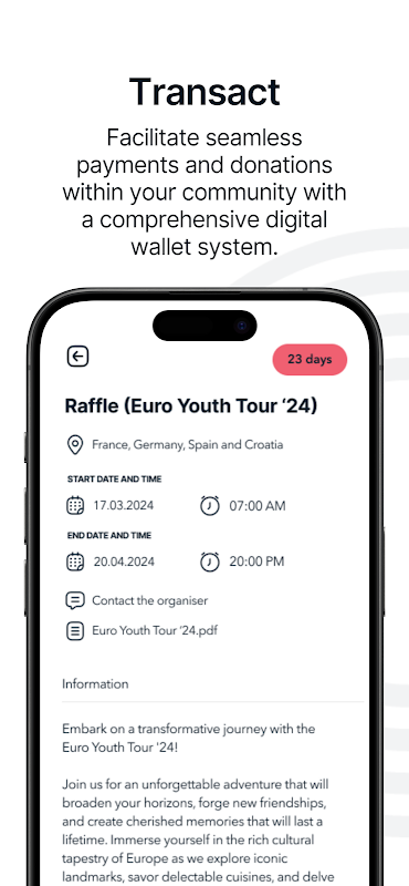 Con Circular, gli utenti godono di un ambiente su misura che dà priorità alle connessioni significative e alla gestione semplificata delle attività della comunità. Dall'organizzazione di eventi privati alla facilitazione di transazioni finanziarie sicure, Circular integra perfettamente strumenti essenziali per la costruzione e l'interazione della comunità.