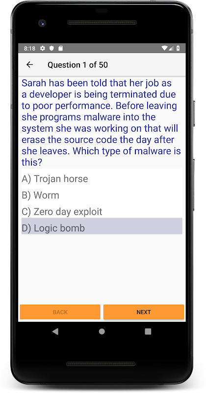 Intuitiva app CISSP® Practice Questions contenente 250 domande e risposte a scelta multipla. Ho studiato da solo per l'esame CISSP® e l'ho passato per la prima volta e ho creato questa app per aiutarti a fare lo stesso. La formazione CISSP® è dura ma con gli strumenti giusti puoi superare l'esame!