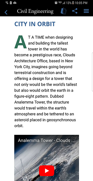 La versione mobile del premiato Magazine Ingegneria Civile presso l'American Society of Civil Engineers.