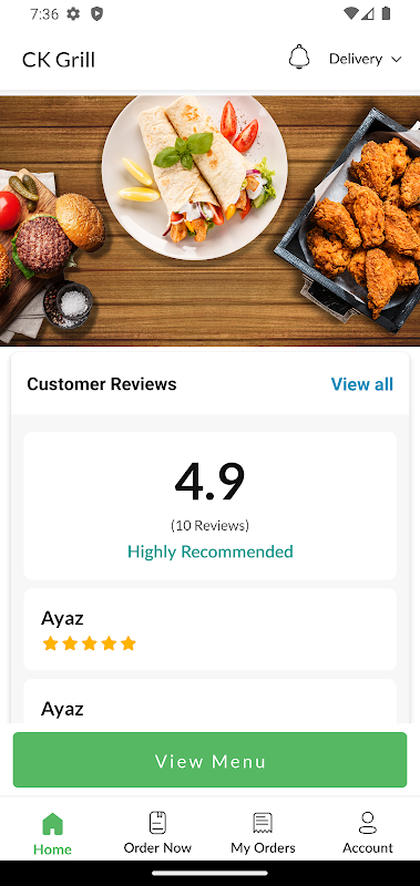 Vivi la magia di CK Grill con la nostra app, offrendo sapori autentici direttamente a casa tua. Goditi un processo di ordinazione semplice: esplora semplicemente il nostro ampio menu, seleziona i tuoi piatti preferiti, aggiungili al carrello ed effettua il pagamento con facilità. Che tu paghi in contanti o con carta, ti offriamo la soluzione.