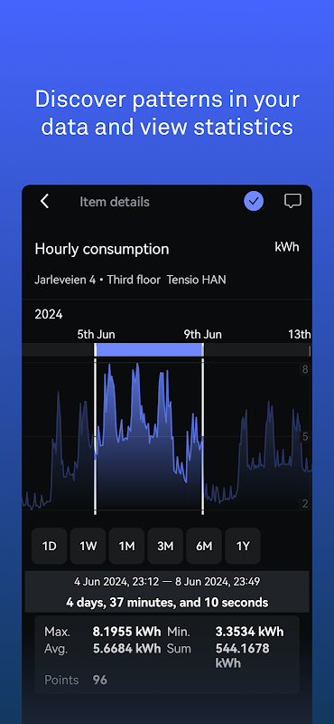ESPLORA E ORGANIZZA I TUOI DATI • Organizza i tuoi dati in sequenze temporali. • Ingrandisci facilmente per vedere i dettagli o rimpicciolisci per ottenere un'immagine completa dei tuoi dati • Trova tutti i segnali dei tuoi dati nel visualizzatore di segnali. • Usa il selettore del tempo per ottenere statistiche per un periodo di tempo selezionato • Utilizzare il selettore del tempo per esportare facilmente i dati per un periodo di tempo selezionato.