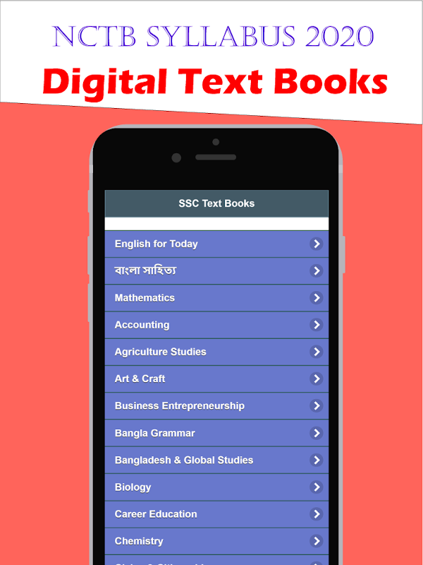 NCTB English text book - বোর্ড পাঠ্য বই 2020 একটি ছাত্রবান্ধব এন্ড্রয়েড অ্যাপ। এই অ্যাপটিতে আপনারা পাবেন সকল class 9-10 (SSC) all books ৯ম-১০ম শ্রেণীর সকল বই যা আপনাদের এস এস সি পরীক্ষা ২০২০ এর সহায়ক হবে। নবম - দশম শ্রেণীর ইংরেজি ভার্সন পাঠ্যবই ২০২০ সিলেবাস অনুযায়ি এই অ্যাপে সন্নিবেশ করা হয়েছে ইংলিশ ভার্সন ম্যাথ বই, সায়েন্স বই, বিজনেস স্টাডিজ বই ইত্যাদি সব এন সি টি বি সিলেবাস ২০২০ অনুযায়ি। আশা করি আপনাদের সহায়ক হবে এই ৯ম- ১০ম শ্রেণির ইংলিশ ভার্সন বই অ্যাপটি।