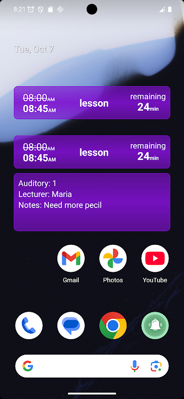 App facile da configurare che ti permette di sapere quando inizia o finisce la lezione in tempo.