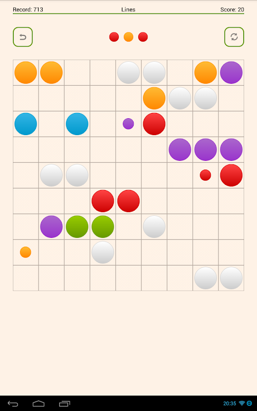 Il gioco inizia con una 9 × 9 pensione con tre palle scelti fuori di sette colori differenti. Il giocatore può muovere una palla per turno, e il giocatore può muovere solo una palla in un determinato luogo, se vi è un percorso (set legato di celle vuote verticali e orizzontali) fra la posizione corrente della palla e la destinazione desiderata. L'obiettivo è quello di eliminare le sfere da linee di formatura (orizzontale, verticale o diagonale) di almeno cinque sfere dello stesso colore. Se il giocatore non formano tali linee di almeno cinque palline dello stesso colore, le palline in quelle linee scompaiono, e guadagna un giro, cioè può muoversi un'altra palla. In caso contrario, vengono aggiunte tre nuove palle, e il gioco continua fino a quando la scheda è piena.