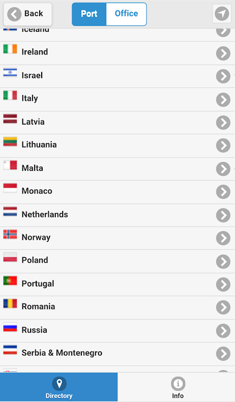 - Ricerca di sedi di uffici per porto, paese o parole chiave.
