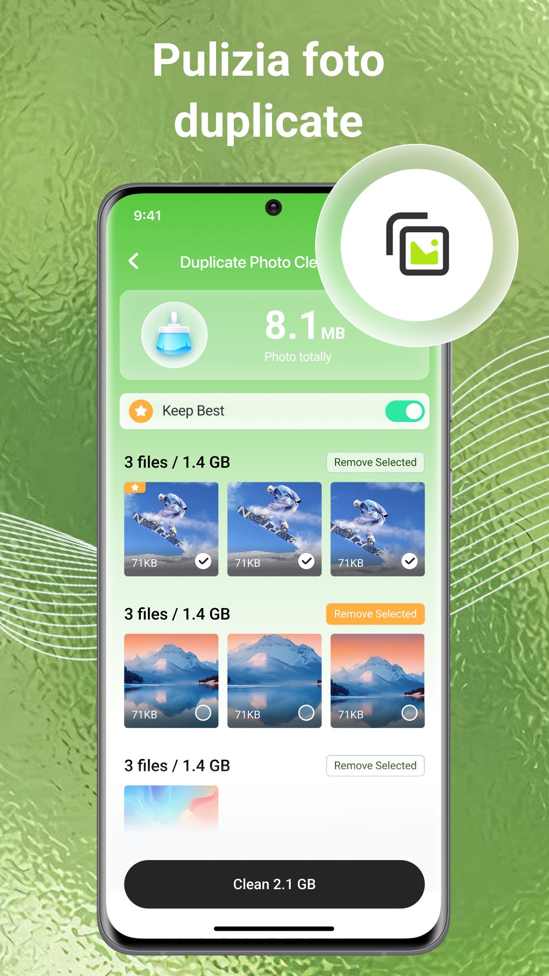 Screenshot duplicati e video dimenticati possono creare confusione nella tua galleria. CleanLoom semplifica le operazioni seguenti:
