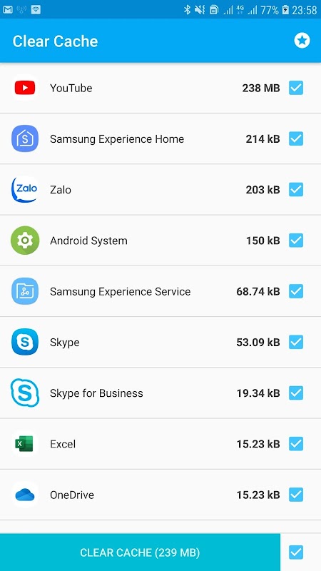 When app exits , cache files are useless , you can save phone space and speed up your phone via clean these junk cache files.