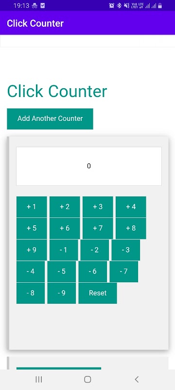 Un contatore di incrementi e decrementi di clic per contare tutti i numeri da 0 a 9.