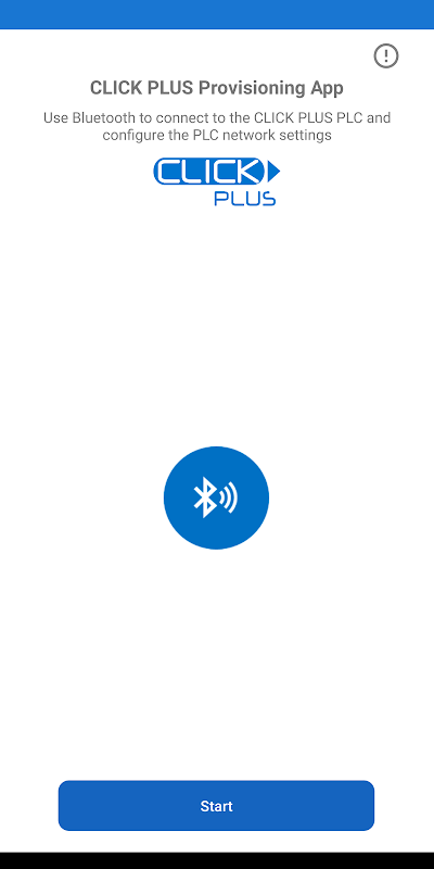 L'app CLICK PLUS Provisioning viene utilizzata per configurare i controller AutomationDirect CLICK PLUS C2-02CPU e C2-03CPU con Wi-Fi e Bluetooth integrati. Un nuovo CLICK PLUS di fabbrica ha il Bluetooth abilitato per impostazione predefinita, che viene utilizzato per consentire all'app di connettersi e configurare rapidamente le impostazioni Wi-Fi necessarie. Il provisioning viene solitamente eseguito una volta e implica il processo di preparazione e dotazione delle impostazioni di rete del PLC CLICK PLUS per consentire una connessione wireless dal software di programmazione Click fino a quando non è possibile caricare un progetto con impostazioni permanenti.